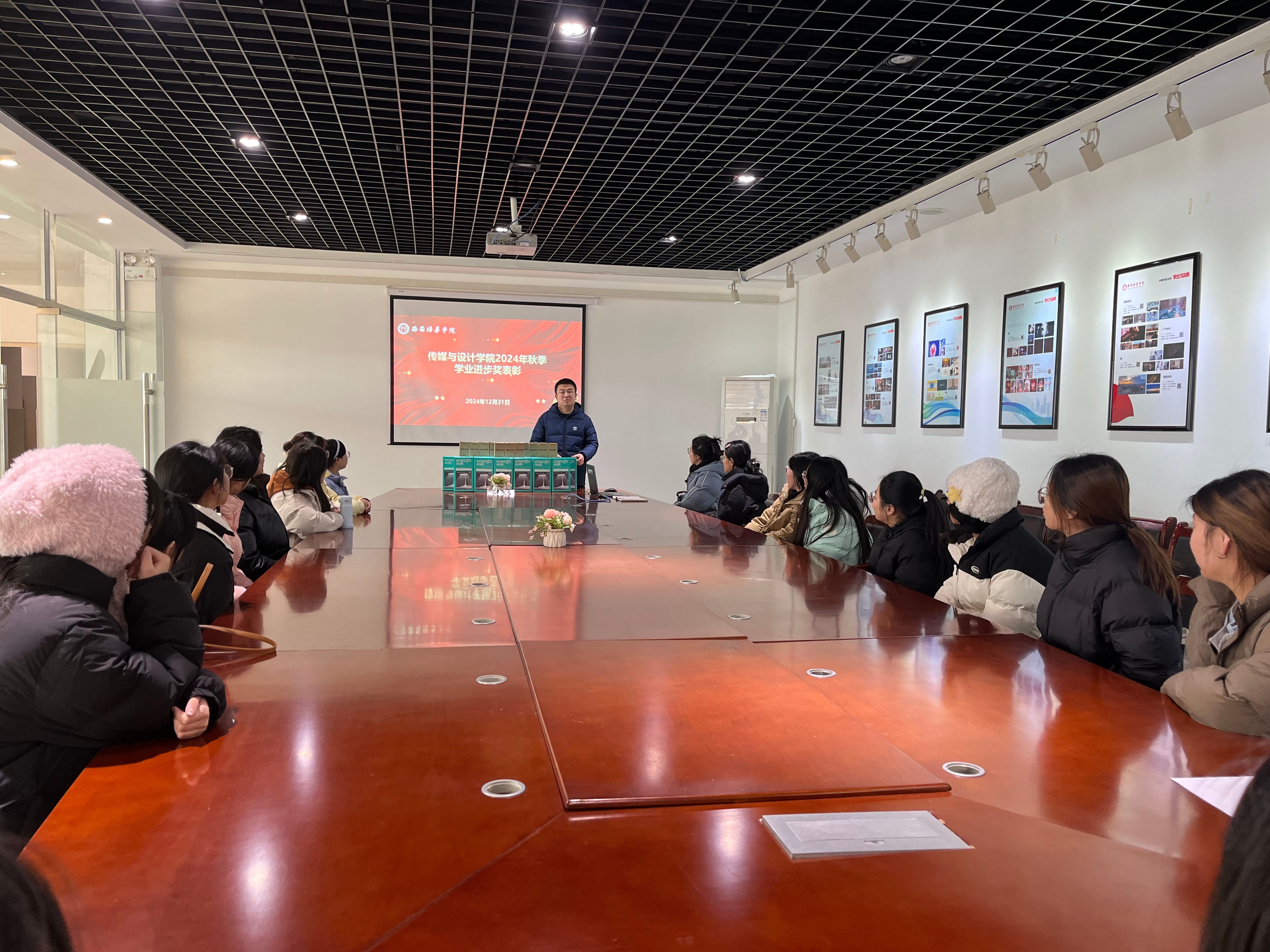 2024年12月30日,传媒与设计学院在汇知楼第三会议室举行了2024年度学业进步奖表彰大会。本次大会旨在表彰在学业上取得显著进步的学生,鼓励他们在学业上继续努力,追求卓越。