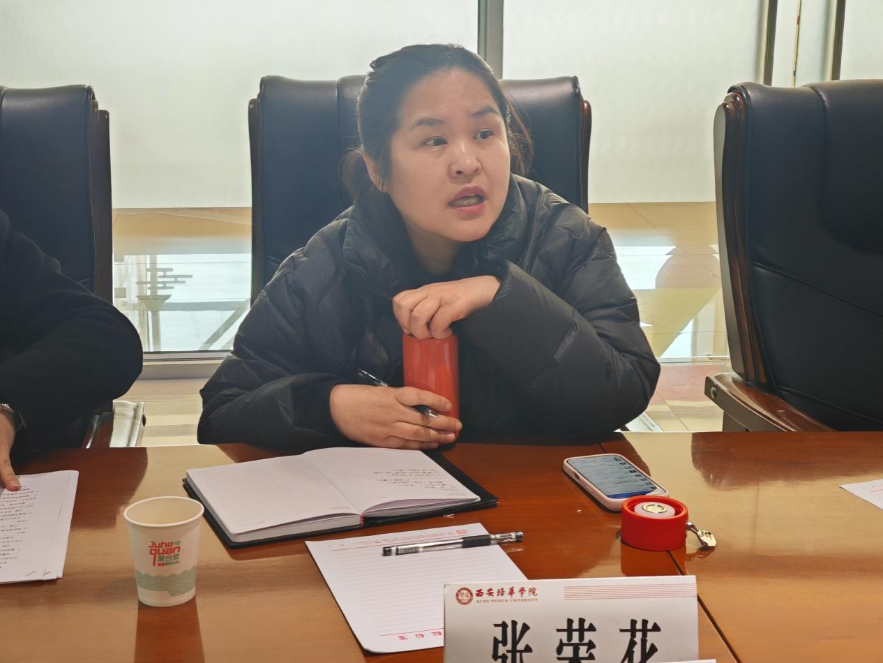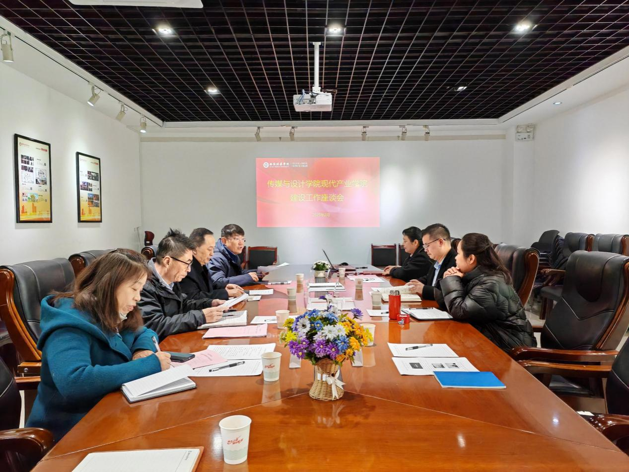 会议伊始,传媒与设计学院副院长邵璐首先对与会校领导表示欢迎,并做产业学院的建设进程汇报。产业学院建设是学校积极响应国家创新驱动发展战略、深化教育教学改革的重要举措。邵院长依据传媒与设计学院现有学科建设的特点,从“数字文旅、数字资产、数字营销”等方面进行了产业建设介绍,同时对产业学院建设中推进工作,如组织与团队搭建、企业引进、存在问题、所需支持等方面进行了详细的汇报。传媒与设计学院党总支书记王飞老师、副院长张荣花老师就产业学院建设做了补充发言。