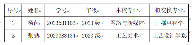 根据学校与台湾艺术大学的合作协议,经过学生自主报名、学院初审、学校评审等环节,现将2025年度秋季交换生项目遴选结果公示如下: