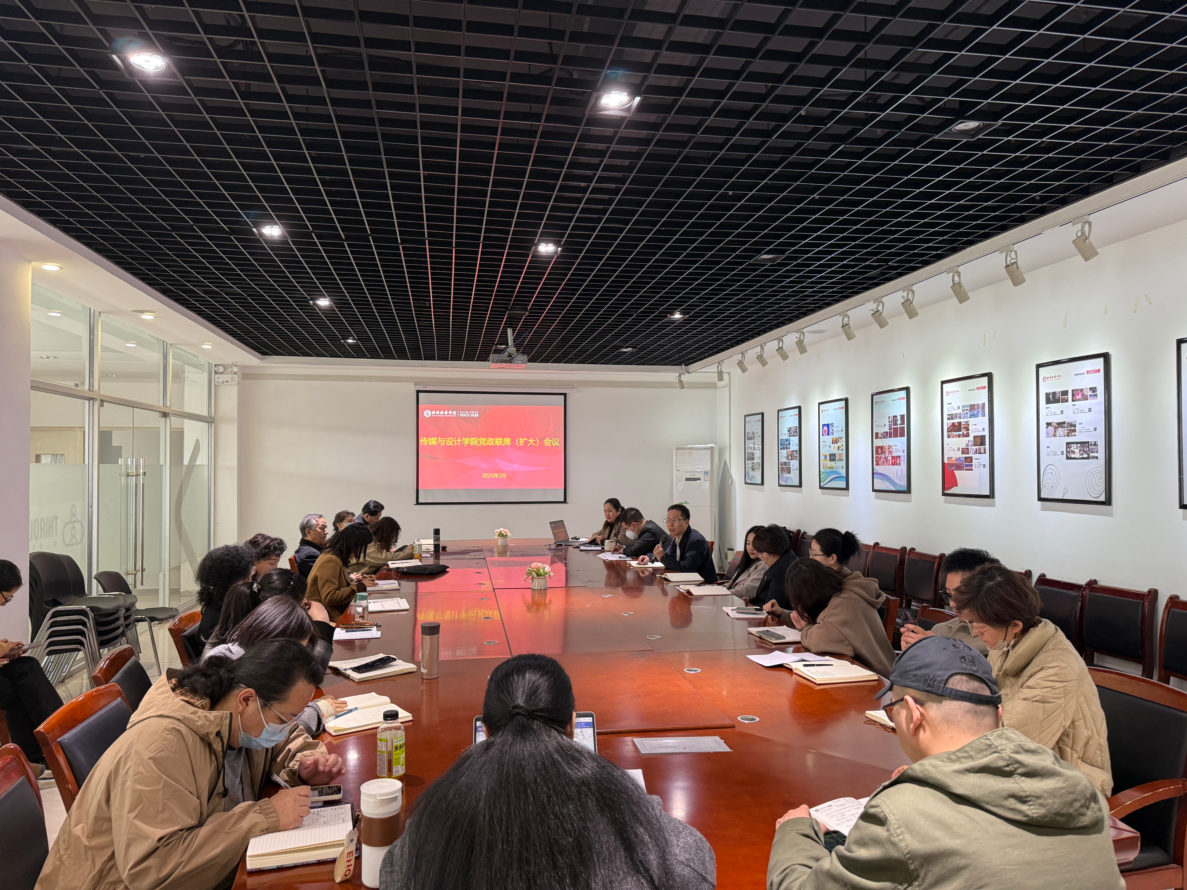 为进一步加强学院管理,提升教育教学质量,推动学院各项工作高质量发展,2025年3月12日,传媒与设计学院在汇知楼第四会议室召开3月份党政联席(扩大)会议。学院领导班子成员、党委委员、各专业带头人、系主任等参加了会议。会议由学院党委书记兼行政副院长王飞主持。