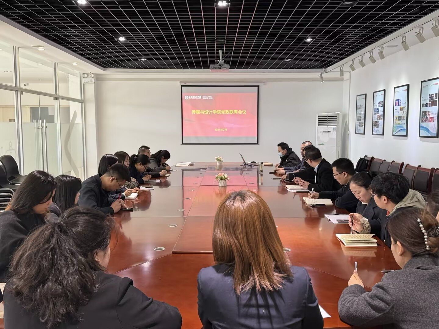 2025年2月20日,为深入贯彻落实党的教育方针,推进学院高质量发展,传媒与设计学院召开党政联席(扩大)会议。会议由党委书记兼行政副院长王飞主持,领导班子成员、党委委员、实验室主任、教师代表参会,围绕师生思想政治教育、学生就业创业、教师发展、实验室建设及安全工作等议题进行了全面部署。