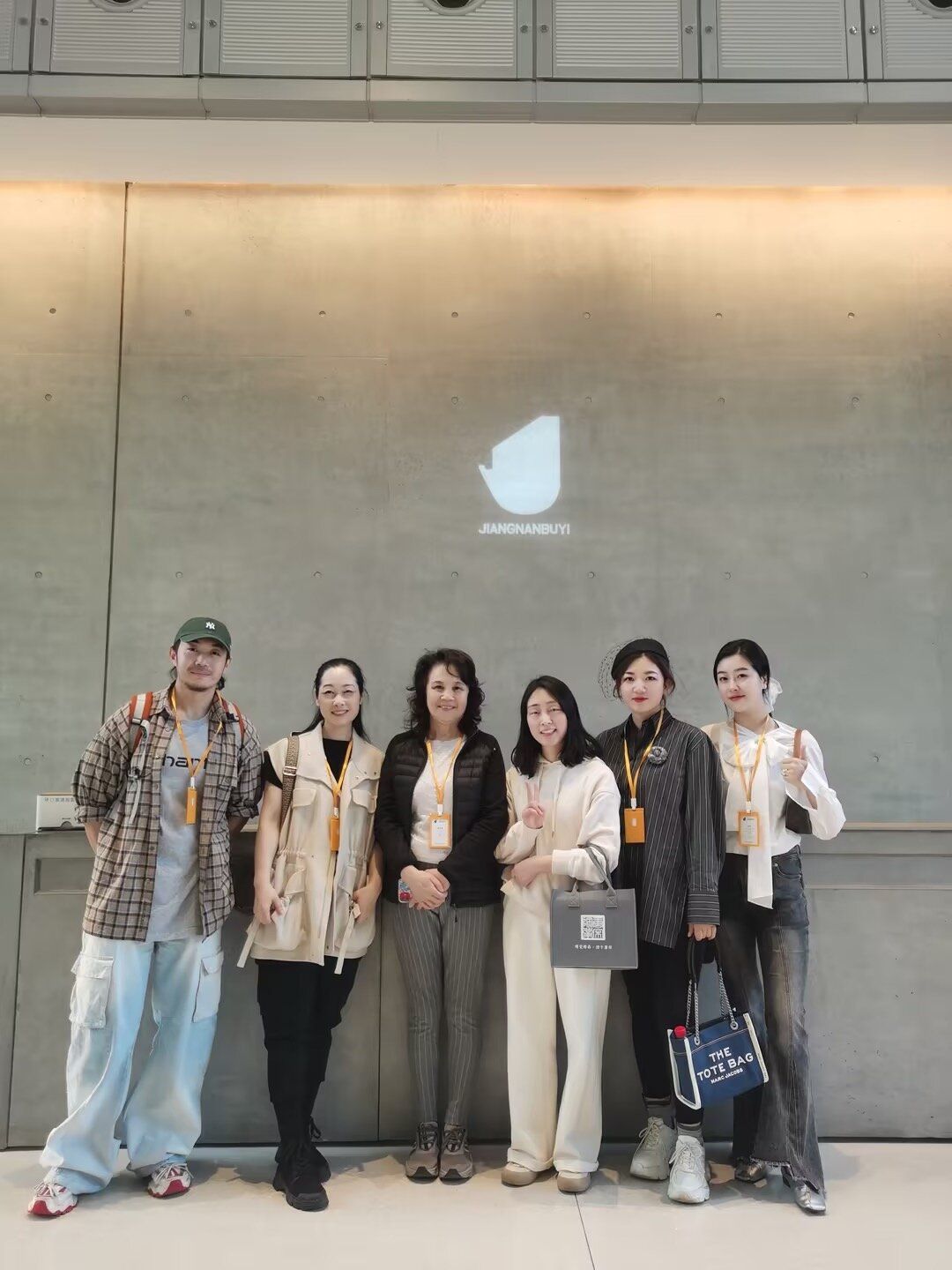 我院教师团队首站抵达杭州江南布衣总部。作为中国最有特征差异以及综合影响力的品牌之一,江南布衣以“自然共生”理念为核心,通过沉浸式展厅展示了其从面料研发到成衣设计的全链条创新实践,全面考察了品牌设计研发、生产管理及市场营销体系,对企业"艺术与商业结合"的运营理念表示高度认同。