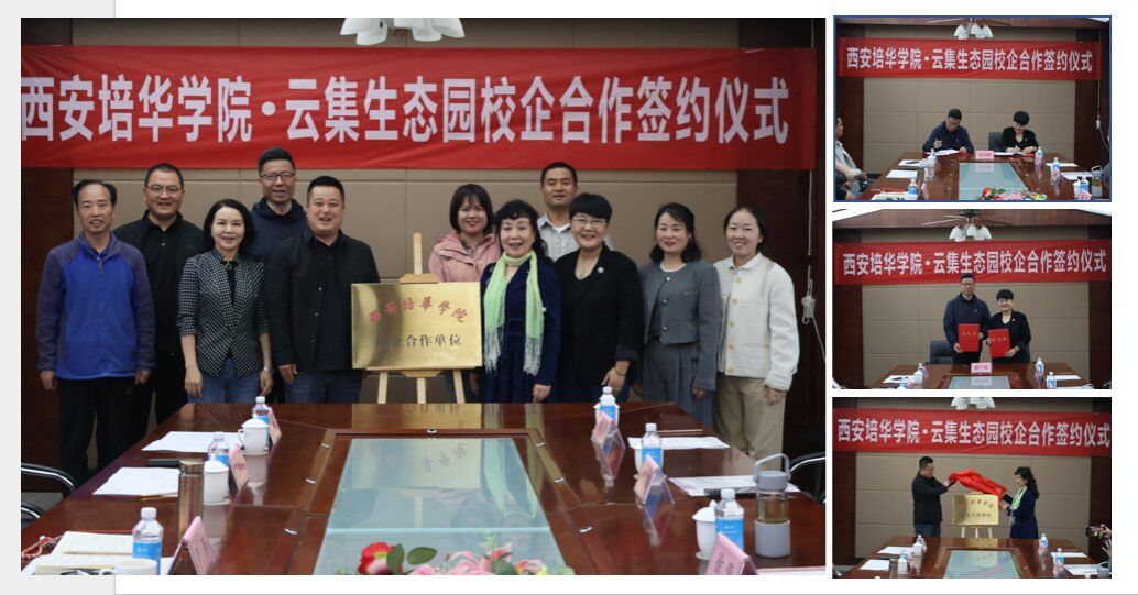 2025年4月15日,西安培华学院传媒与设计学院与陕西云集文化旅游发展有限公司(云集生态园),在云集生态园蓝溪书院隆重举行校企合作签约暨授牌仪式。此次合作旨在充分发挥双方优势,搭建产学研协同创新平台,为企业培养高素质专业人才,推动学校教育教学改革与发展,实现校企共赢。
