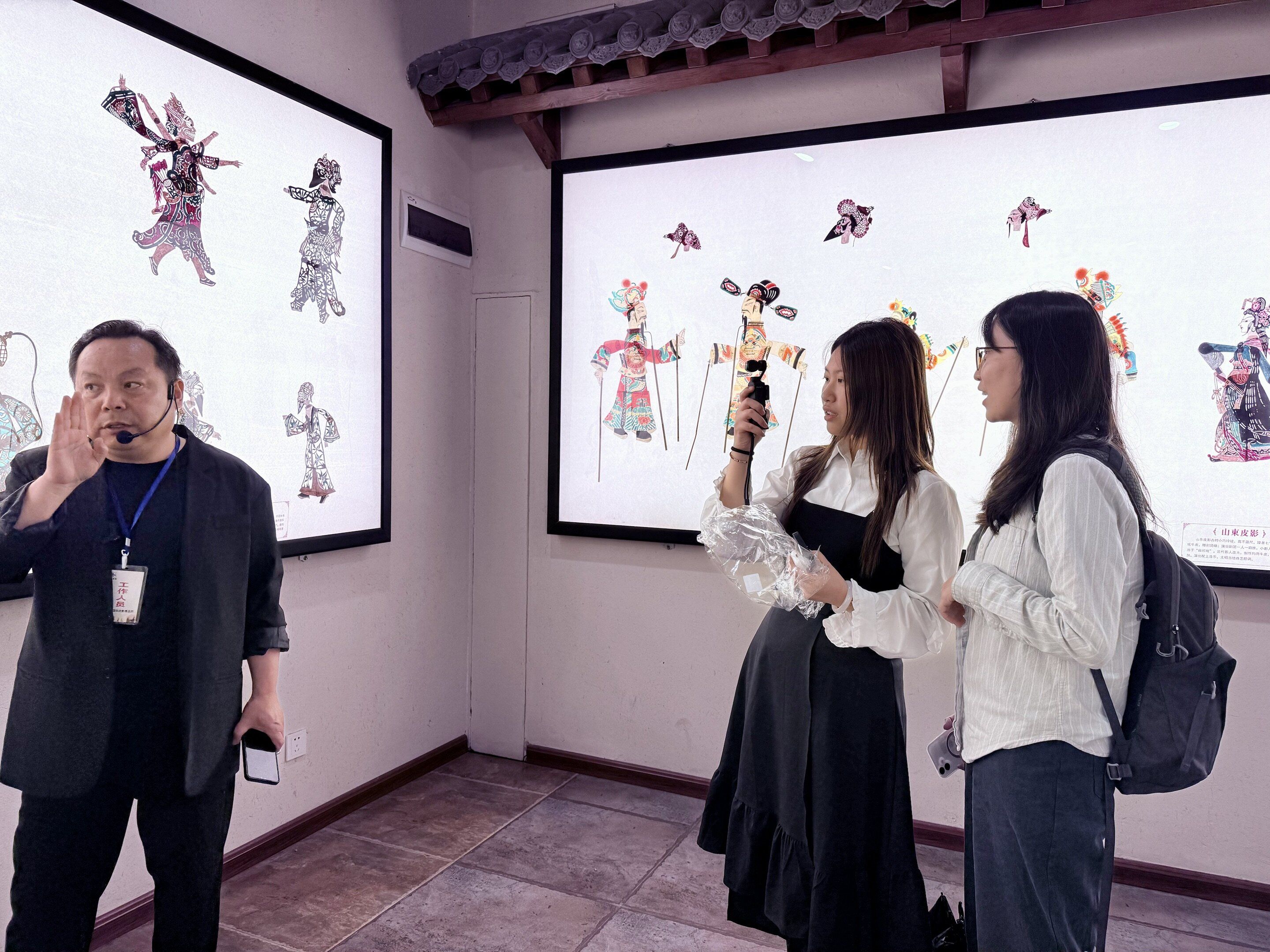 指导教师卫美伊在皮影博览园指导学生拍摄记录
