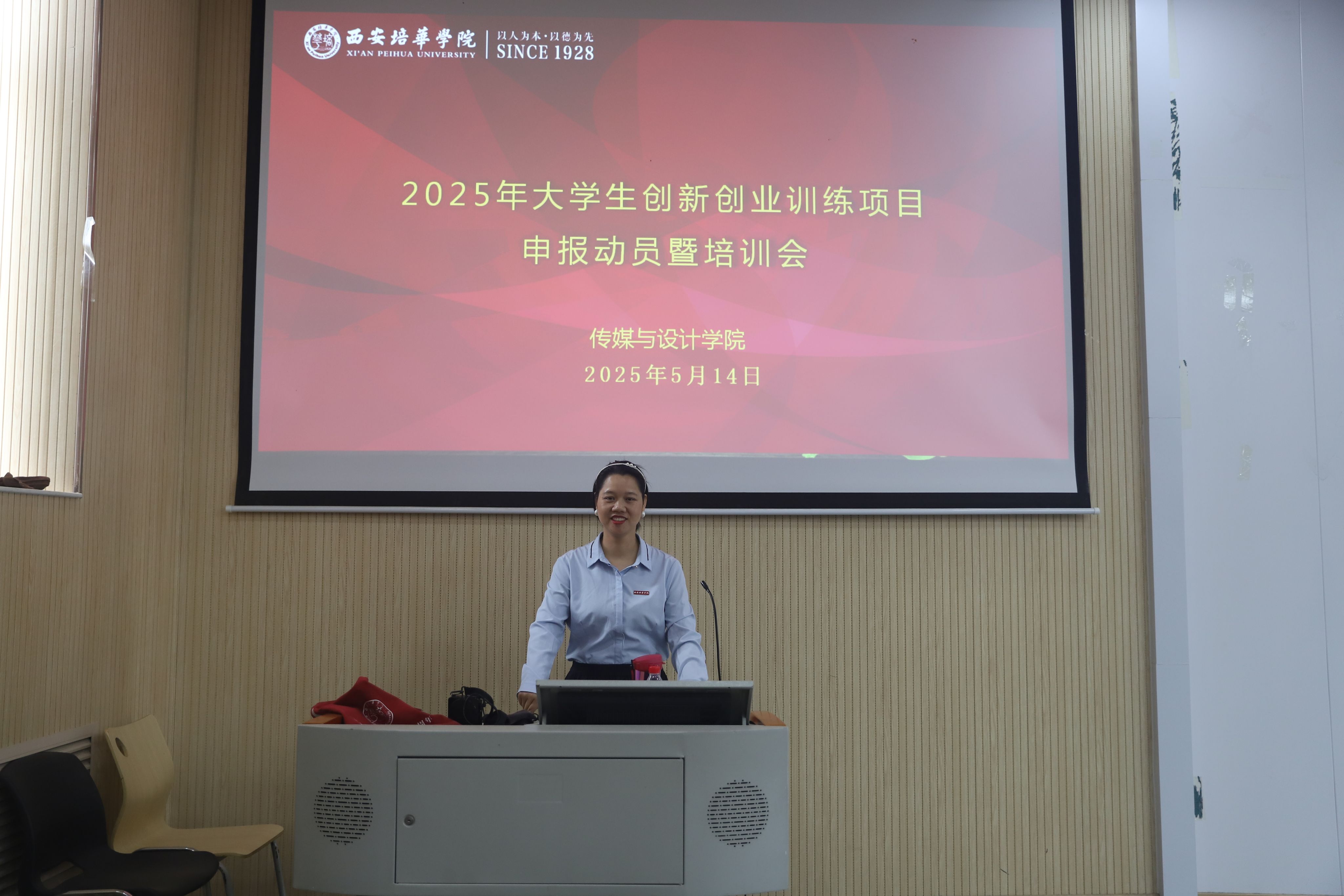 2025年5月14日14:30传媒与设计学院在3507教室成功举办了一场大学生创新创业训练项目(简称“大创项目”)申报动员及培训会。来自各专业的教师、项目申报人、大学生近300人参加了本次会议。
