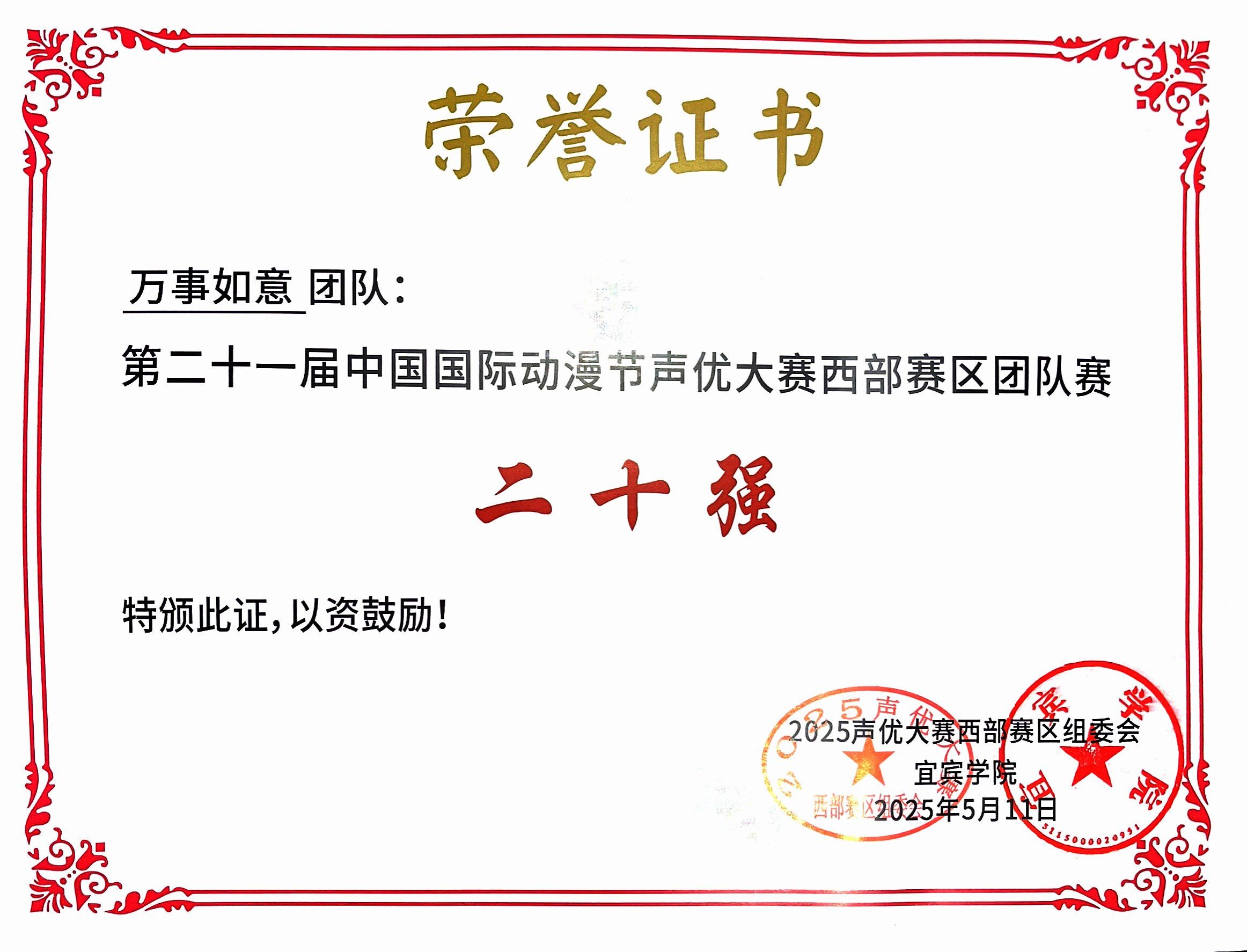 5月10日至11日,由中国国际动漫节执行委员会办公室主办的第21届中国国际动漫节声优大赛西部赛区复赛在四川宜宾市落下帷幕。经过线上初赛与线下复赛以及决赛,传媒与设计学院“影视片配音”课程学生姚云超、李顺心、顾若愚组成的“万事如意”队表现亮眼,从近万名影视配音行业专业选手中脱颖而出,最终斩获西部赛区二十强!