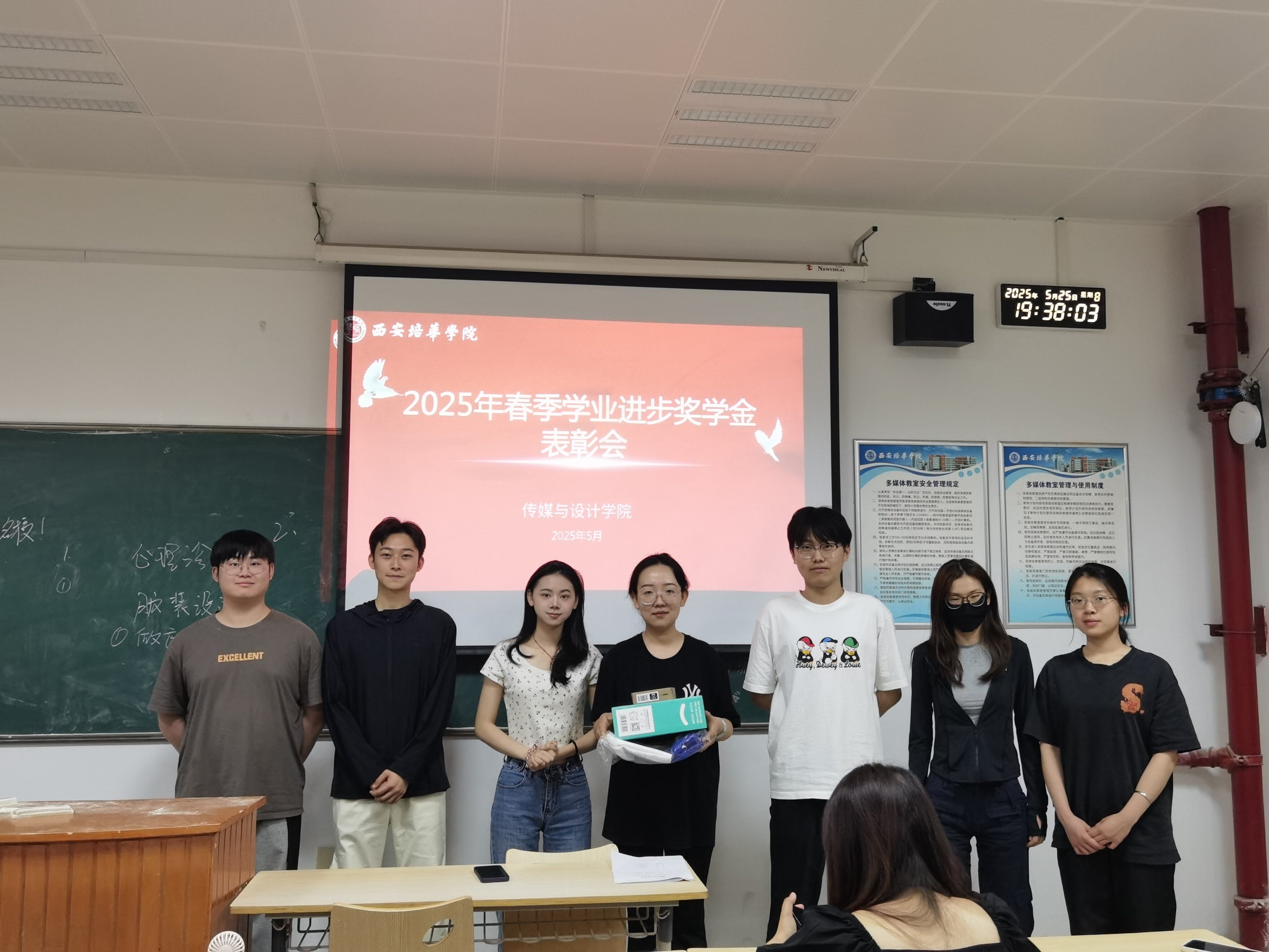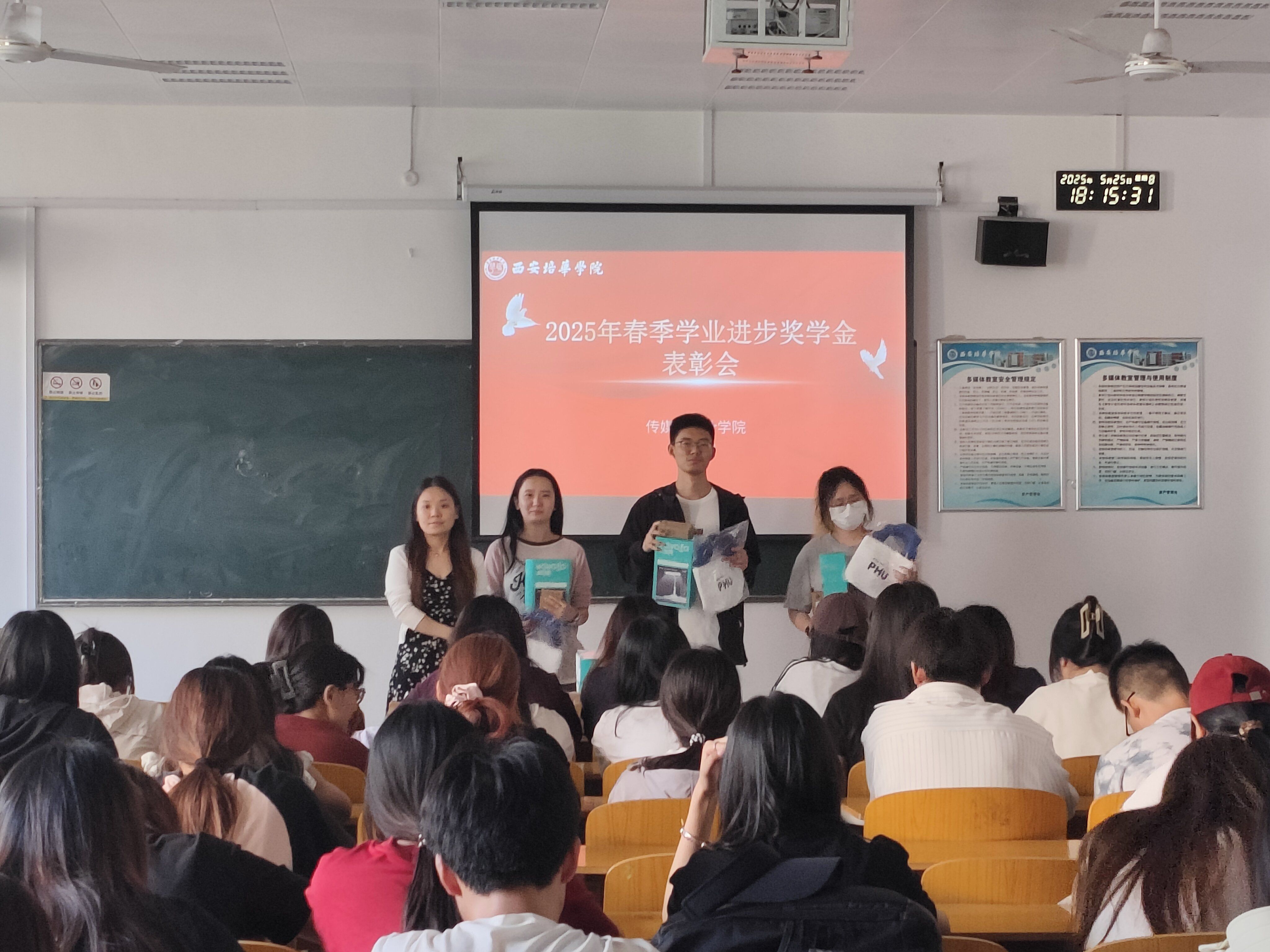 5月25日,传媒与设计学院2025年春季学业进步奖表彰会在各班班会中隆重举行。表彰会上,辅导员为获奖学生颁发奖品,同学们也纷纷登台,分享自己实现学业“逆袭”的经验与心得。