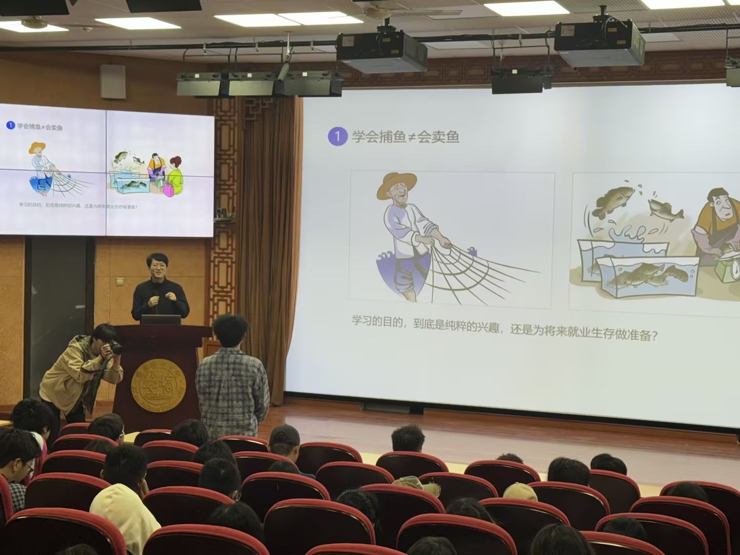 讲座由知名新媒体运营专家、西安北方星辰设计有限公司CEO、AI设计领域资深从业者晁杨博主讲。晁杨博总经理结合自身丰富的行业经验,从AI技术的最新发展、AI在影视动漫设计中的应用案例、新媒体运营的核心策略等多个维度,为在场师生带来了一场内容丰富、视角前沿的学术盛宴。