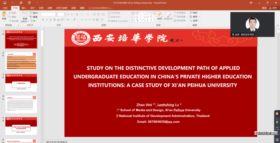 2025年10月19日,西安培华学院传媒与设计学院赵伟教授在第十八届亚洲组织发展国际研讨会上进行线上主题发言,向来自15个国家和地区的专家学者展示了我校在应用型本科教育领域的创新成果,获得与会专家的高度评价和热烈反响。