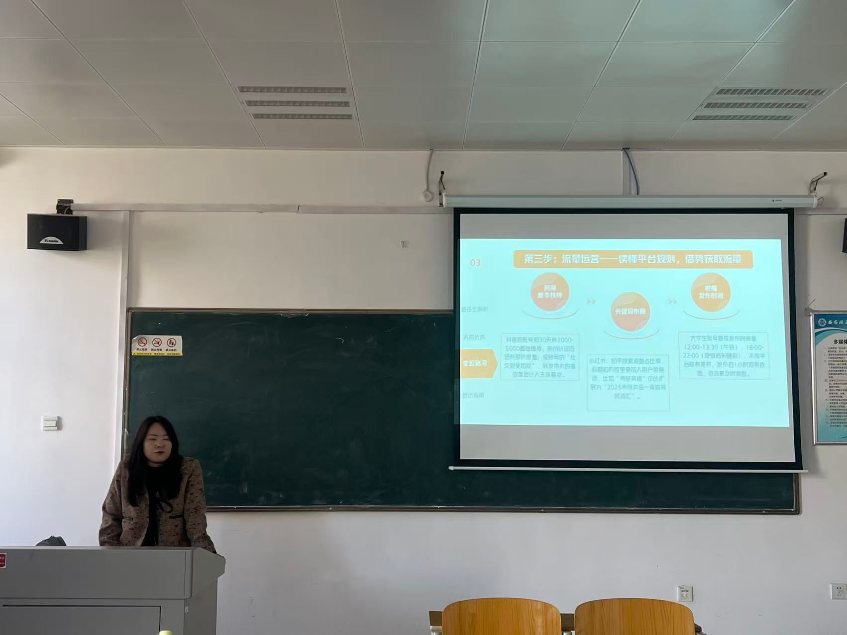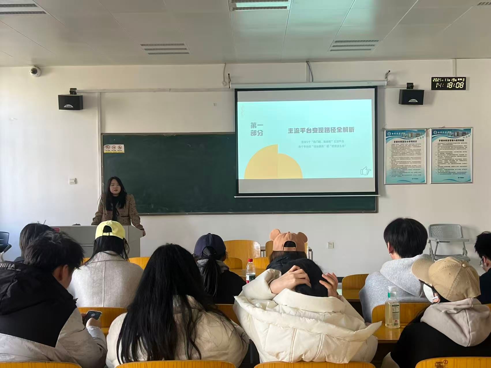 为帮助播音主持艺术专业学生把握融媒体时代机遇,拓宽职业发展边界,精准掌握自媒体商业化运营技巧,11月19日,学院特邀陕西佳汇杰传媒有限公司新媒体经理、行业资深导师金颖面向播音主持艺术专业学子开展“自媒体账号商业化”实战训练与指导。本次实战训练与指导聚焦自媒体变现核心痛点,以理论解析+实战案例+互动实操的形式,为学生搭建从专业能力到商业转化的实战桥梁,助力复合型传媒人才培养。