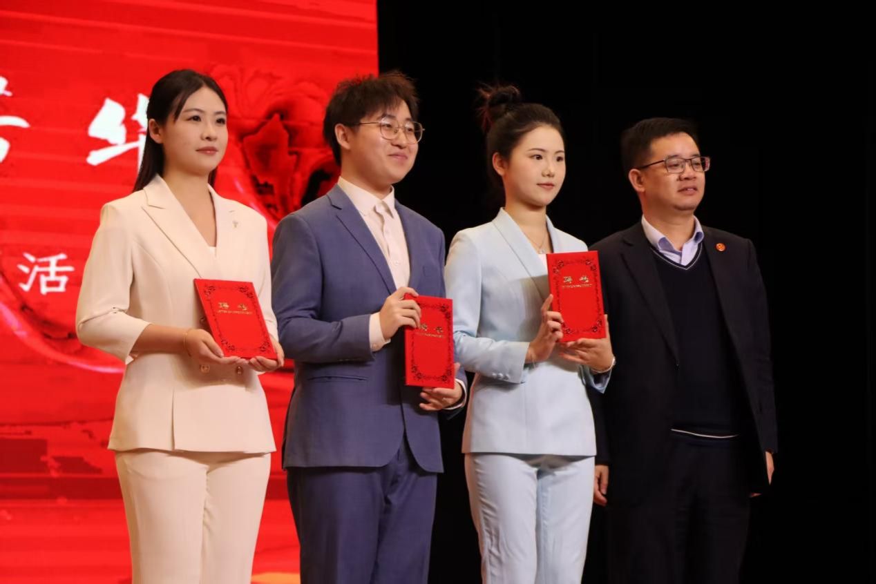 表演结束后,活动进入庄重有序的换届述职与聘任环节。团长代表梁义英上台做述职报告,全面总结了任期内团队在建设发展、活动开展、技能提升等方面的丰硕成果,分享了在团队管理中的宝贵经验与初心感悟,并对大学生朗诵艺术团的未来发展设立了目标。