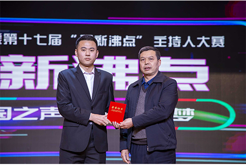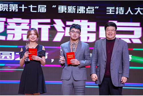 传媒学院党委书记江俊瑞为人气奖获得者张泽颁奖