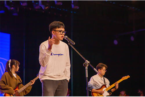 比赛在同学们的倒数声中正式开始,并由DM音乐工作室的“Four voice”带来燃爆全场的音乐表演。本次决赛共有14名选手参加并且分为专业组、非专业组,其中包括晋级决赛选手12名,复活投票选手2名。