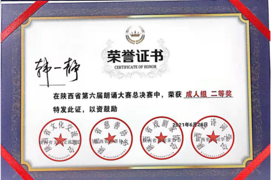 第七届丝绸之路国际电影节嘉年华“电影配音大赛,冠军;