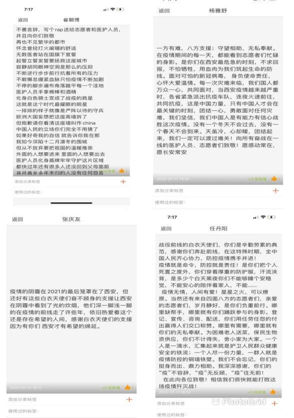 课后《新闻采访与写作》课程组组长赵伟说,课程组教师利用网络平台进行混合式教学,是特殊时期背景下的一次教学改革。在课程讲授中,教师们及时在课堂上引入最新抗疫案例,在教学过程中及时调节学生心理状态。另外,作为院级课程思政示范课,教师在授课过程中融入思政元素,通过近期校内外新闻了解和理解我校教师们在封校期间“舍小家保大家”的奉献精神,通过讲述学校核酸检测的志愿保障队伍特别是医学院的学生志愿队伍每天七、八个小时站在寒风中为大家做核酸提供志愿服务的案例,鼓励同学们坚定信心,团结一心,共同努力,早日赢得抗疫战争的胜利。