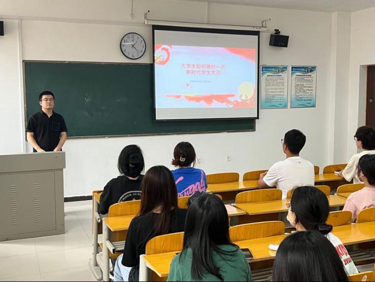 学生第三党支部组织委员宋世杰作为主讲人为大家分享“如何成为一名合格党员”。她讲到,作为一名党员,首要先明确党员标准,党员标准指的是发展党员的衡量标准和规范党员的行为的根本尺度,也是对共产党员的本质规定和基本要求。要做到“讲政治、有信念,讲规矩、有纪律,讲道德、有品行,讲奉献、有作为”。从政治素养、纪律意识、道德品质、能力素质等方面逐步完善自己、提升自己,争取早日成为一名合格的共产党员。