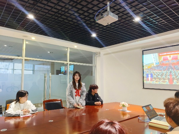 在热烈的交流讨论环节,学生党员结合自身专业和学习生活实际,踊跃分享学习两会精神的心得体会。赵娅佟同学说道:“两会精神让我更加明白了作为传媒与设计学院学生的责任和使命,我们要不断学习新知识、新技能,提高自己的专业素养和实践能力,为文化传媒事业的发展贡献自己的智慧和才华。”刘释蔓同学也分享道:“通过观看两会视频,体会两会精神,我深刻感受到了国家对青年的重视和关怀,作为新时代的大学生,我们要积极响应国家号召,将个人的理想追求融入国家和民族的事业之中,为实现中华民族伟大复兴的中国梦贡献自己的力量。”大家一致认为,全国两会为青年学生指明了方向,提供了广阔的发展舞台,作为新时代的青年党员,要积极响应国家号召,勇担时代使命,在实现个人价值的同时,为国家发展添砖加瓦。