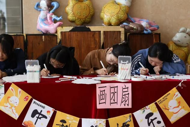 活动现场设置四大特色板块,以文化为纽带,让党建双创理念在互动中落地生根。“绘扇寄情”板块里,师生党员带领同学们以“民族团结”“家国情怀”为主题创作扇面,一笔一画间将“铸牢中华民族共同体意识”融入艺术创作,让红色基因与传统文化同频共振;“灯笼映初心”板块中,大家合作组装、绘制中秋灯笼,灯笼上的党徽、“不忘初心”等元素格外醒目,象征着师生同心向着党建双创目标携手前行。