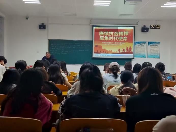 在解读抗战精神的时代内涵时,南斌红书记指出,伟大抗战精神跨越时空、历久弥新,不仅是历史的宝贵财富,更是新时代激励我们攻坚克难、奋勇前进的强大动力。天下兴亡、匹夫有责的爱国情怀,要求我们始终把国家利益放在首位,将个人理想融入民族复兴伟业;视死如归、宁死不屈的民族气节,激励我们在面对困难挑战时坚守底线、绝不退缩;不畏强暴、血战到底的英雄气概,鼓舞我们在改革发展道路上敢于担当、勇于拼搏;百折不挠、坚忍不拔的必胜信念,指引我们在复杂形势下坚定方向、砥砺前行。结合传媒与设计学科特点,他谈到,作为文化传播和创意创新的重要阵地,学院既要让师生铭记历史、缅怀先烈,更要通过专业实践让抗战精神“活起来”“传下去”,用创意赋予红色文化新的时代表达。