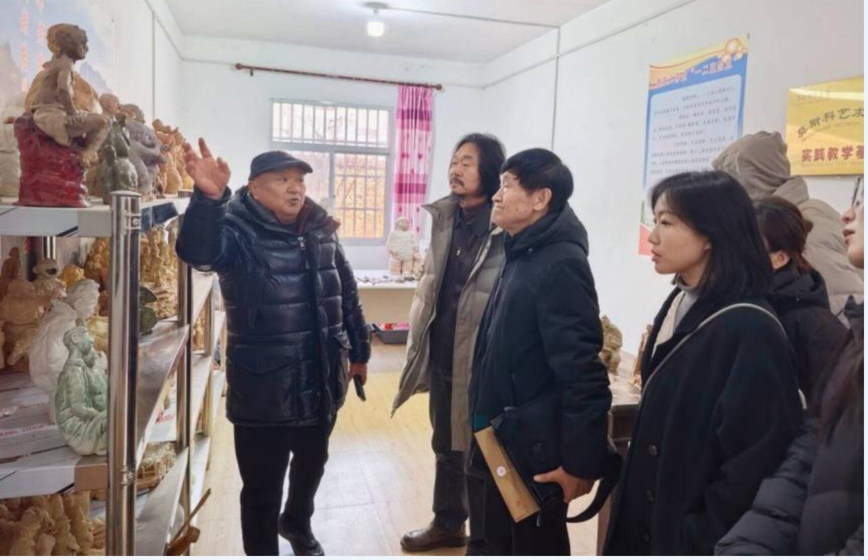 结合党建双创“党建+专业”融合发展目标,本次活动特别邀请汪锋同志之子、著名雕塑家王又凯先生开展现场教学与学术交流。在汪锋同志故居旁的工作室及展陈空间,王又凯先生系统讲解独创“空心捏瓷”艺术品制作技艺,从瓷土筛选、内模建构、捏塑技法到烧制把控、意蕴提炼,全方位剖析这一融合传统陶瓷工艺与现代雕塑语言的艺术形式,并结合反映革命历史、时代风貌的雕塑作品,生动阐释如何将革命情怀与艺术追求相融合,让艺术作品承载红色记忆、彰显时代价值。