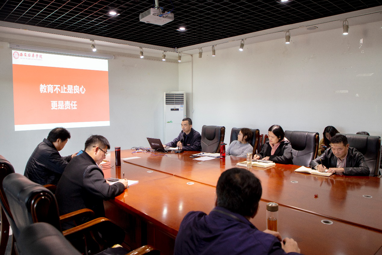 11月6日,传媒学院在汇知楼第三会议室举办了高校课程思政能力提升专题分享会,院长杜耀峰、常务副院长王西娅、教学副院长赵伟、院长助理张荣花及全体教师参加了本次分享会。