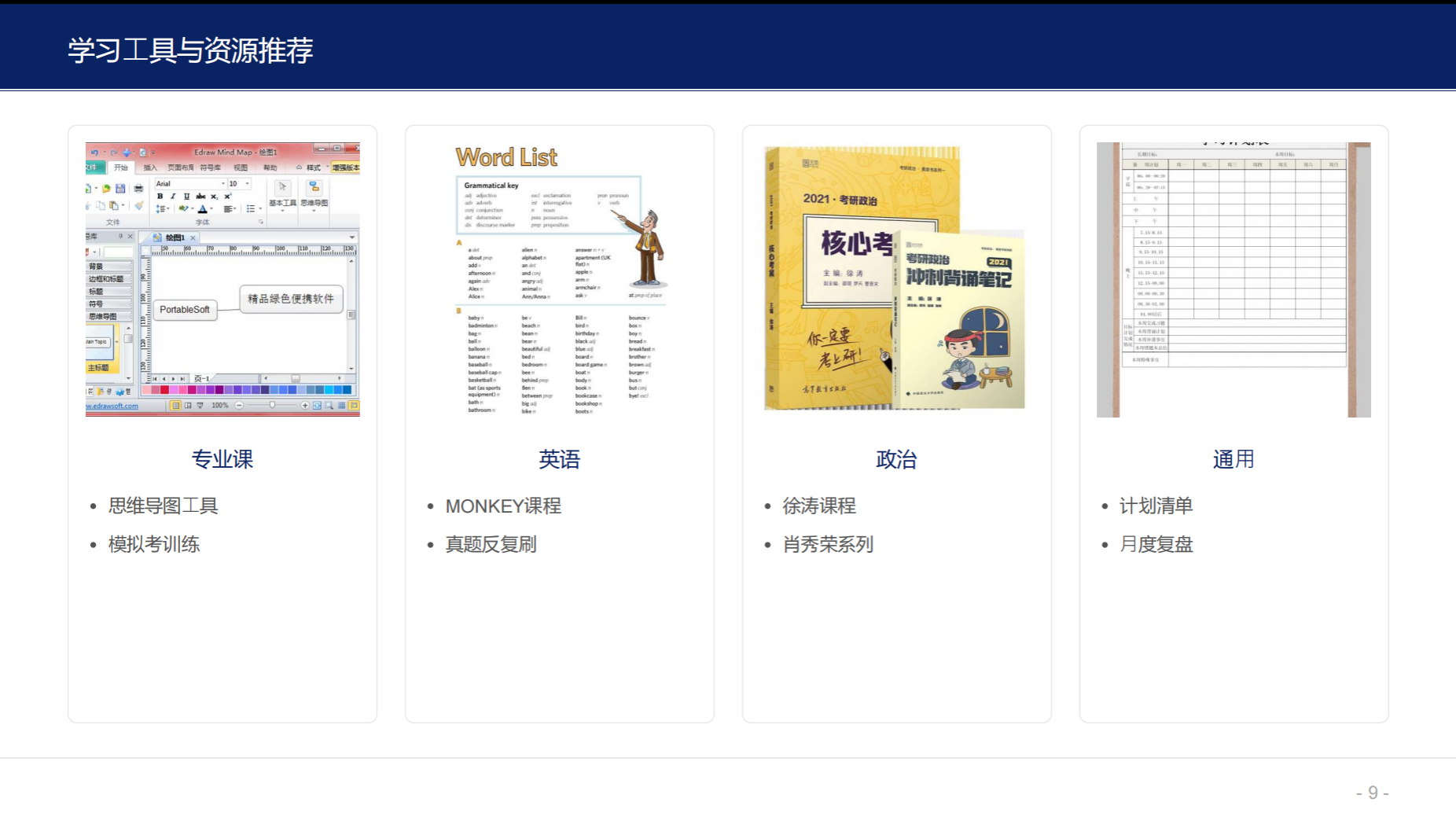 图为柴瑞雅学姐各学科学习工具与资源推荐