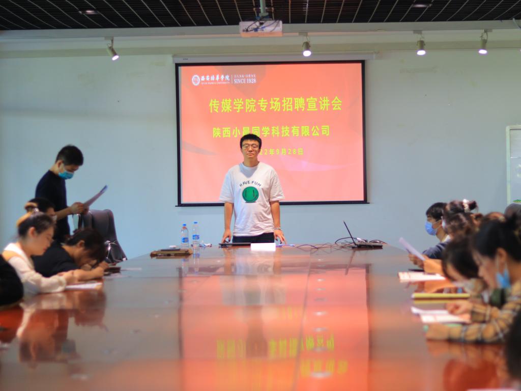 为切实做好我院毕业生就业工作,扩大我院学生实习实践就业渠道,大力构建毕业生与企业的交流平台,2022年9月28日,传媒学院举办了陕西小晨同学科技有限公司专场宣讲会,多名相关专业学生参加。