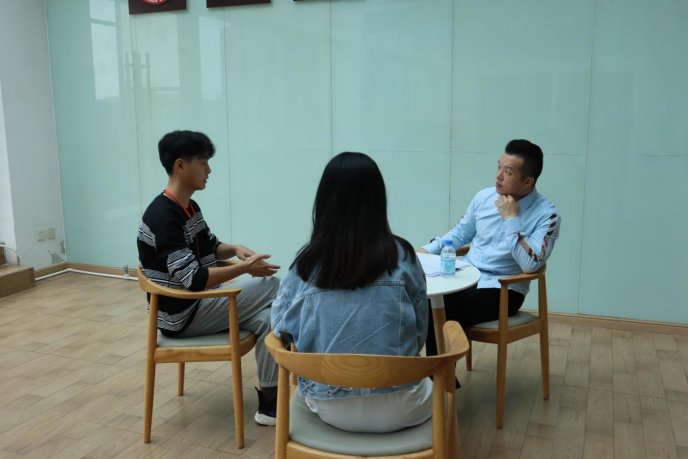 招聘会上,企业招聘人员通过播放宣传片、PPT展示、现场讲解等方式向同学们介绍了公司概况、企业文化、薪资待遇等。其次企业招聘人员对本次招聘岗位及岗位要求进行简要介绍,本次招聘岗位设有百度直签主播、主播、运营助理、直播间场控、内容策划、拍摄剪辑等岗位。最后根据岗位需求,公司对参与招聘会的学生进行了分组面试,特别是在对于招聘主播这一岗位,进行了线上与线下的同步会议式面试。