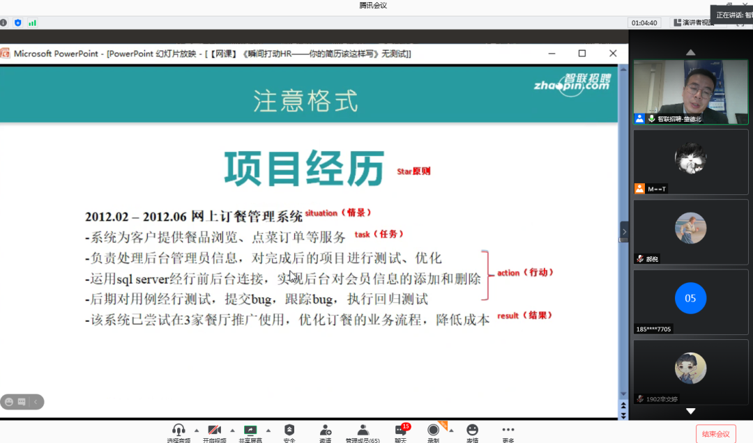 10月23日下午14点,传媒学院约两百余名学生通过腾讯会议参加了就业工作坊系列活动---简历面试指导专题讲座活动。