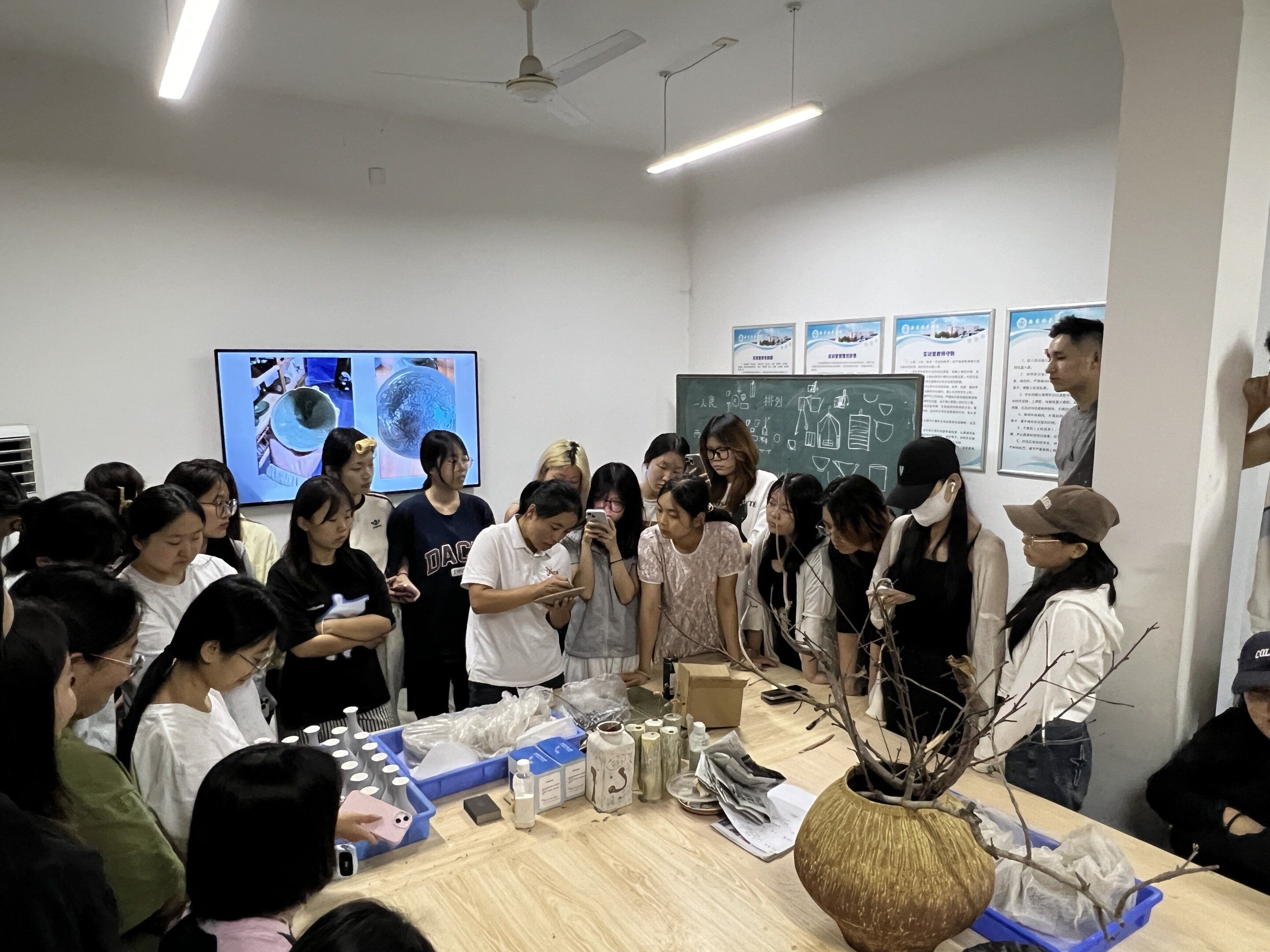 本次课程聚焦陶瓷日用产品的创新与设计,分为“创新设计构思—材料实验探索—主题产品制作—功能性测试与展示”四个阶段开展。火凤凰艺术陶瓷有限公司为课程提供了泥料、釉料、烧制等专业支持,并安排技术骨干梁晓惠老师深入课堂与工作坊,指导学生完成从构想到产品的全过程。通过深度参与,学生不仅提升了工艺技能,更深化了对陶艺与当代生活融合方式的理解。