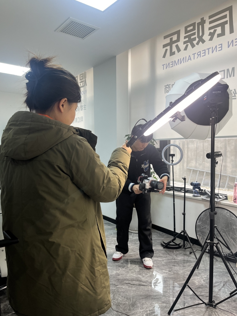 学生在京沪传媒进行短视频拍摄