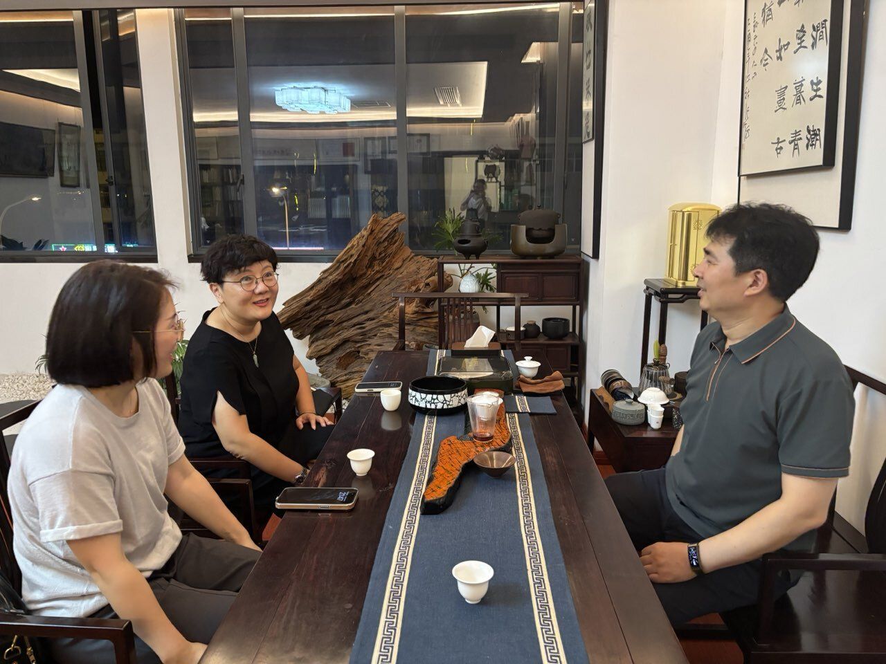 为进一步聚焦行业前沿,精准对接市场需求,提升学生就业质量,7月23日至24日,传媒与设计学院常务副院长徐莹、环境造型设计系主任贾亚丽、教学干事曹萍一行赴福州开展访企拓岗专项调研。先后走访了福州琢一工艺品有限公司和润坊(福建)大漆文化产业集团,详细了解工艺美术行业的最新发展趋势及人才需求,并与两家企业达成初步合作意向。