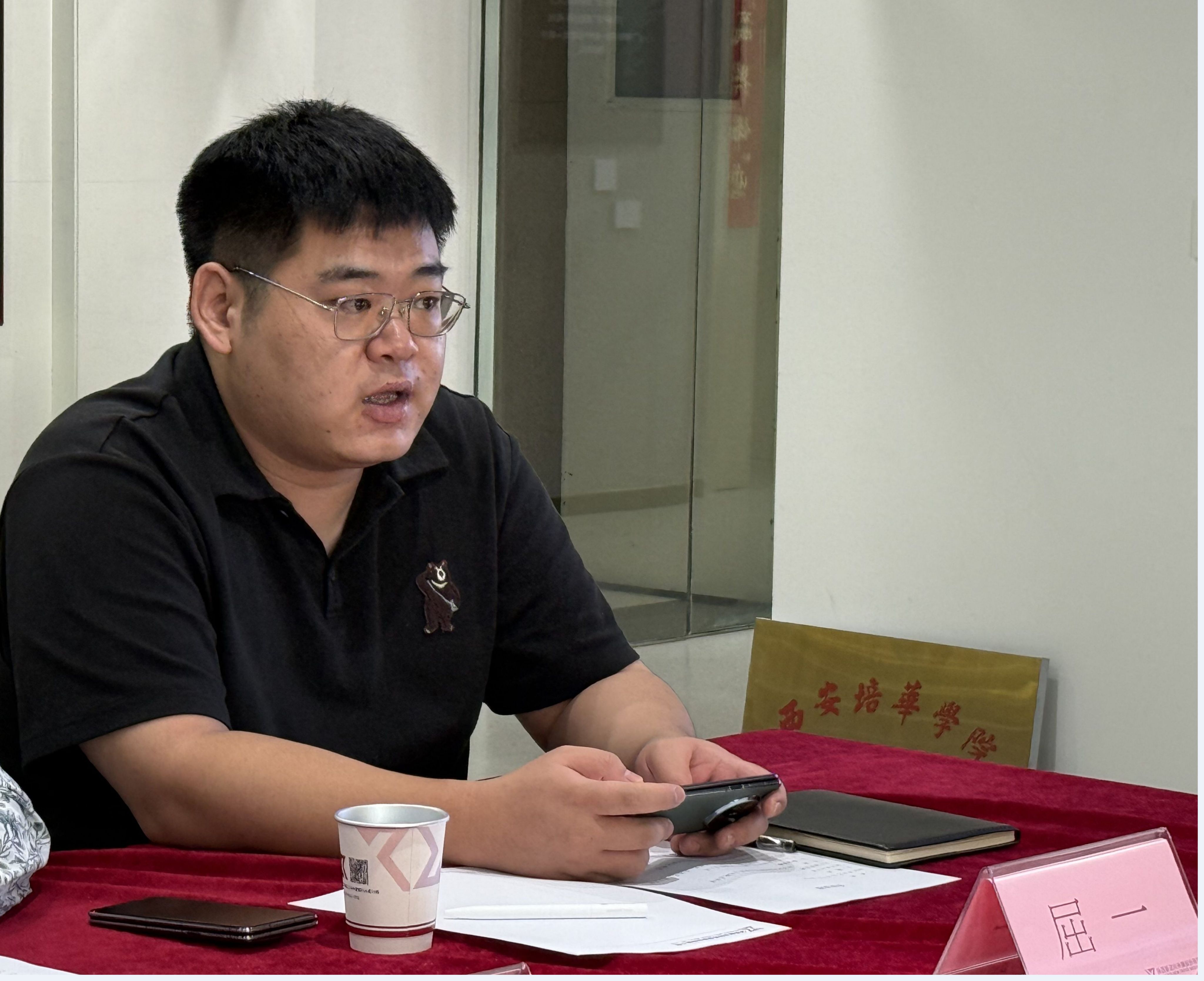 江兴超总经理则介绍了公司在电商直播、短视频等业务板块的现状,表达出强烈的与传媒与设计学院在专业建设、校企协同育人等方面的合作意向。陕西新动向传媒股份有限公司副总经理屈一,作为西安培华学院新闻学专业的优秀毕业生,始终感念母校培育之恩。他深切认同西安培华学院“注重实践、服务社会”的办学理念,并衷心希望更多学弟学妹能加入新动向传媒这个平台,在实践中锻炼成长,在努力中实现价值,携手共创美好未来。