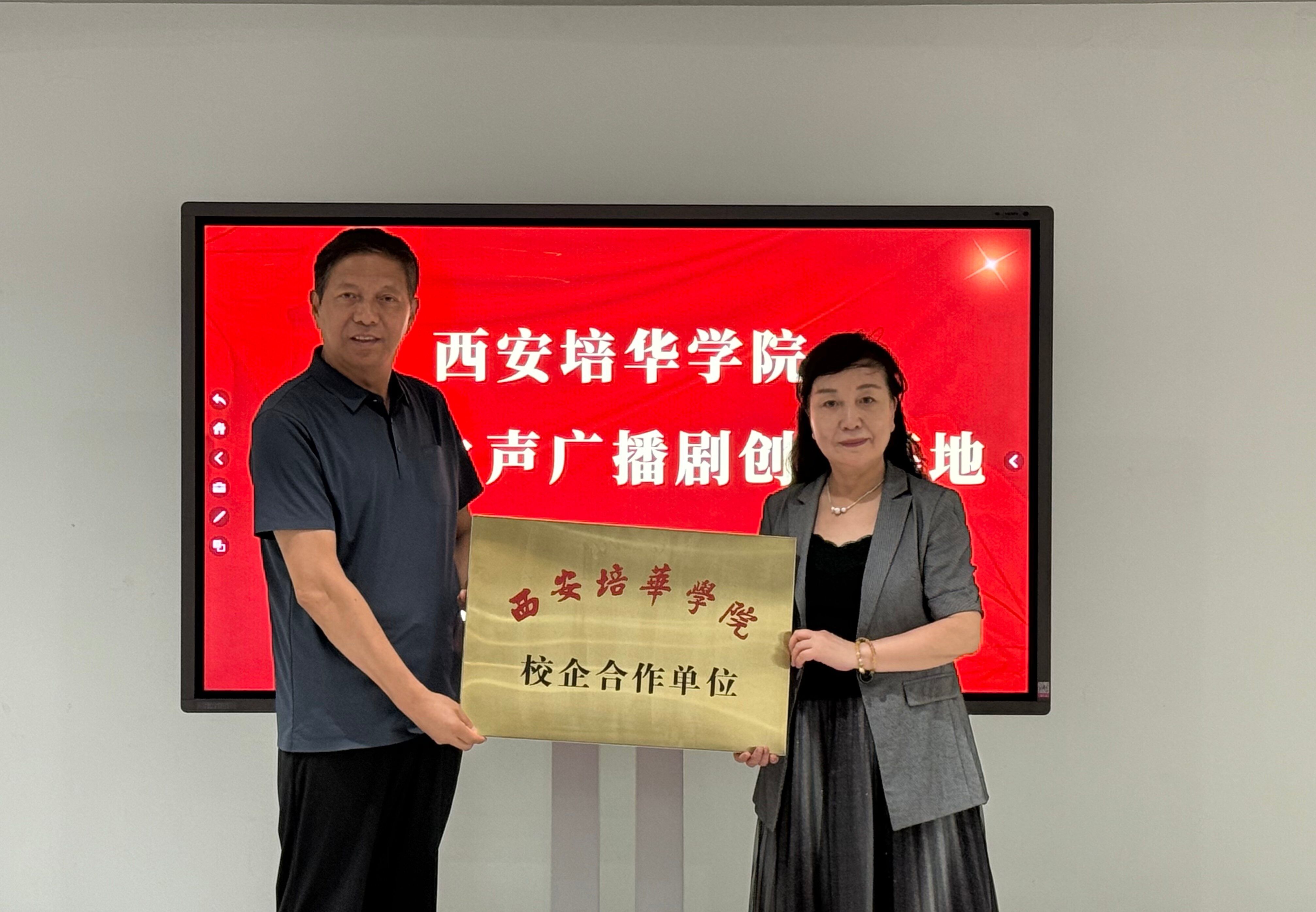 近日,西安培华学院传媒与设计学院与陕西新动向传媒股份有限公司在校外隆重举行校企合作签约暨挂牌仪式。西安培华学院传媒与设计学院常务副院长徐莹、播音与主持艺术专业带头人周东华教授、办公室主任刘维娜、戏剧影视文学专业马希凤副教授、校企合作干事李芳、播音与主持艺术专业骨干教师张甜、史文杰和席瑛培与陕西新动向传媒股份有限公司总经理江兴超、副总经理冯敏、主任殷满仓、副总经理屈一出席仪式。