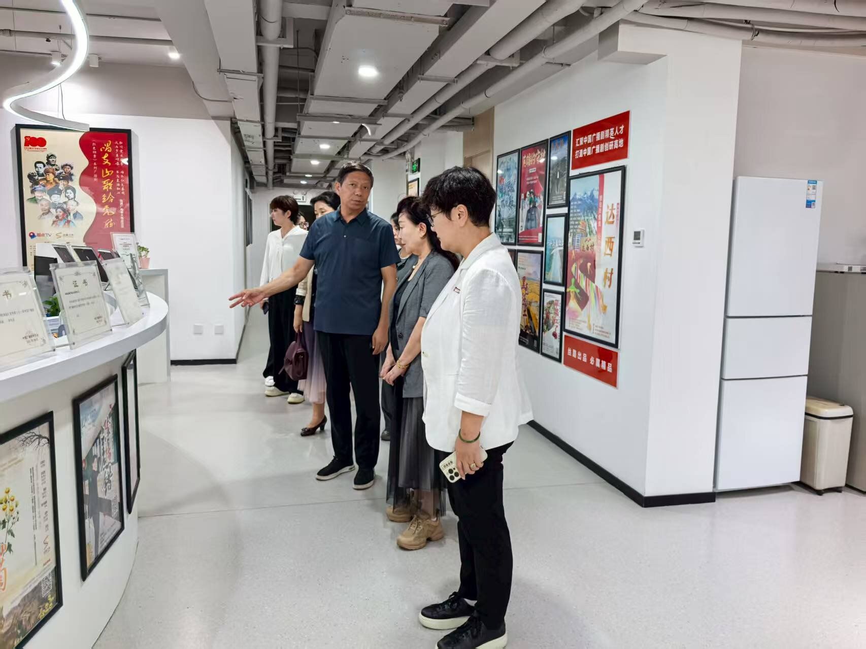 展厅内,殷满仓主任详细介绍了公司在广播剧方面的基本情况,会上与播音与主持艺术专业骨干教师在广播剧的现状以及后续合作培训方面进行进一步洽谈。