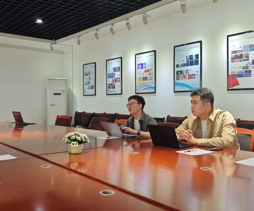 座谈会上,重庆瓶子星球酒业集团内容传播中心负责人李根及品牌UGC运营芦子豪首先介绍了企业的发展历程、品牌文化及核心业务,并分享了企业在品牌传播、文化创意及数字化营销等领域的现有成果与未来规划。随后,企业方就校企合作计划提出初步构想,希望与学院在内容共创、人才培养及资源整合等方面开展深度合作,共同探索品牌故事挖掘、新媒体运营实践及视频内容制作等具体领域。