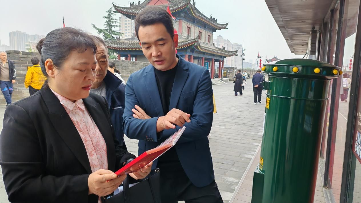 本次走访聚焦于文化创意产业的实践前沿。在西安天扬传媒有限公司负责人陈飞的陪同下,邵璐副院长一行首先来到了位于南门城墙景区的“西安城墙主题邮局”进行实地考察。该店是公司运营的标杆性文旅融合项目,店内陈列的各类融合了西安历史底蕴与现代设计美学的文创产品,如以城墙砖纹为灵感的文具、独具特色的明信片及文创纪念品等,给走访团队留下了深刻印象。邵璐副院长与团队成员详细了解了产品的设计理念、市场定位及运营模式,对天扬传媒在挖掘本地文化IP、推动文旅商业创新方面取得的成果给予了高度评价。