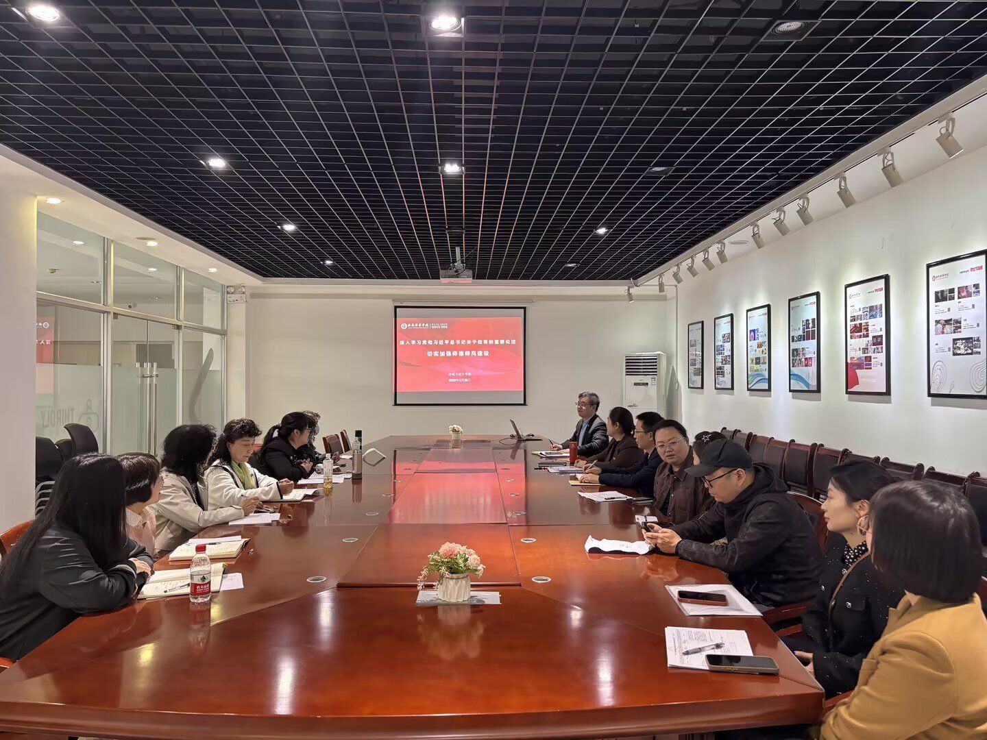 为进一步加强师德师风建设,提高学院教师思想政治素质和职业道德水平,打造一支“有理想信念、有道德情操、有扎实学识、有仁爱之心”的新时代教师队伍,3月26日下午,传媒与设计学院在汇知楼第四会议室举行了主题为“深入学习贯彻习近平总书记关于教育的重要论述 切实加强师德师风建设”专题学习活动,学院副院长张荣花、党委书记兼行政副院长王飞、各专业带头人、负责人、系(副)主任及骨干教师参加了本次专题学习活动,活动由学院党委书记兼行政副院长王飞主持。