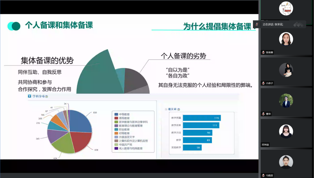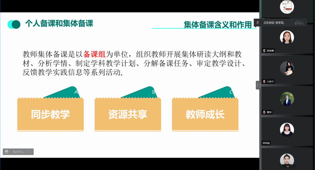 张副院长着重讲解了集体备课的规范,要求集体备课应以课程组为单位,做好开课说明、教案和课件的准备,实现同步教学的目标。她为所有参训教师明确了开学资料提交的时间节点和注意事项,并建议所有教师借助蓝墨云班课平台互相观摩学习,实现资源共享,充分发挥集体备课的优势。