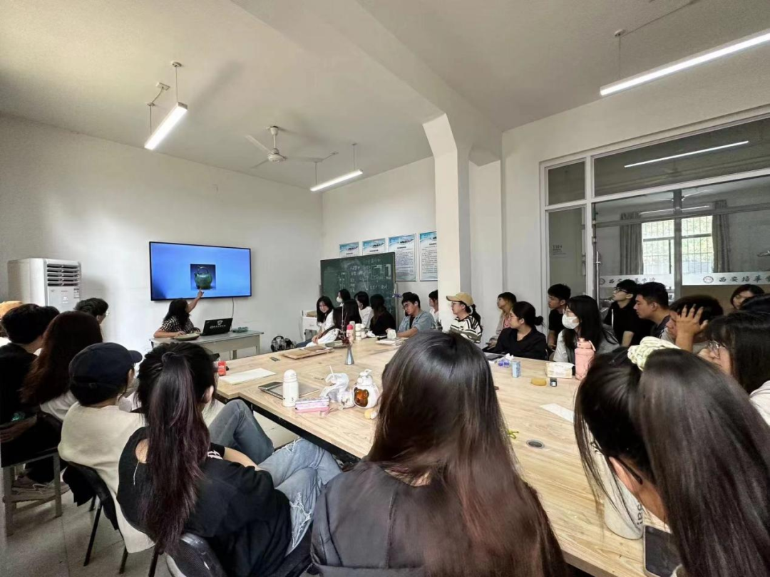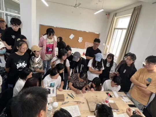 随后,在王老师的指导下同学们也体验了双刀刻花的制作。经过认真学习,同学们也很快上手制作,并在作品中融入自己的设计理念。