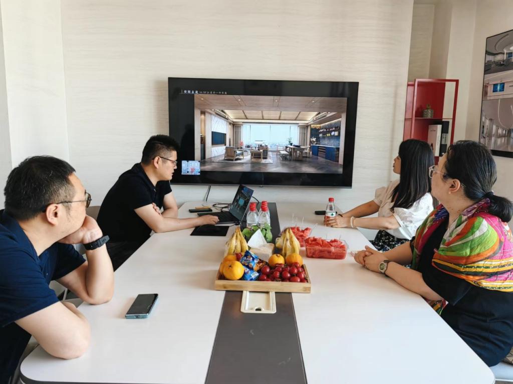 公司创始人、总设计师张凯先生,联合创始人、设计总监王春晓先生,主案设计师程文强及方案设计师陈鹏亲切接待我专业师生一行,先后介绍了企业成功案例、企业机构组成,并就专业建设、学生就业等问题进行了深入交流。