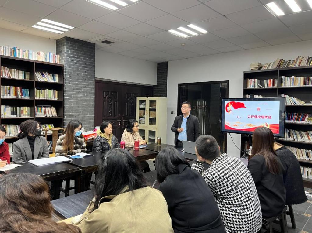 王飞书记分为四部分展开:以评促改增本领、做好四个引路人、正师风践行使命、相信未来有可期,作为一名教师,我们要进一步明确目标,理清思路,潜心教书育人,做好本职工作。