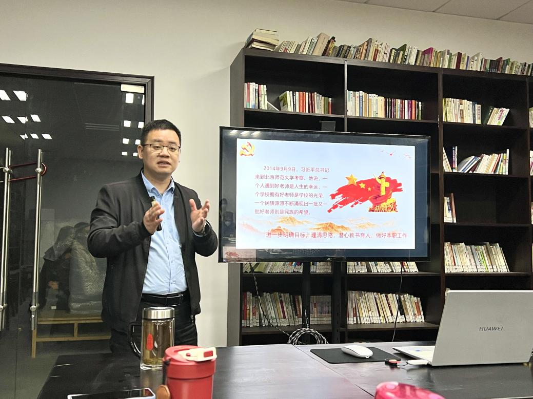 教师是人类灵魂的工程师,教师用笔耕耘,用语言播种,用汗水浇灌,用心血滋润。做一名合格的教师,良好的师德师风并不是简单的说教,而是一种精神体现,一种深厚的知识内涵和文化品位的体现。在日常教育教学工作中,师德需要培养,需要教育,更需要的是教师良好的修养。根据“上好一堂课”青年教师教学能力提升活动月实施方案,建筑与艺术设计学院于3月24日下午开展新聘教师能力提升系列主题活动,围绕师德师风教育举办讲座——以评促改增本领,立德树人铸师魂。由我院党委书记兼行政副院长王飞主讲,院长助理刘清颖主持,全体新聘青年教师参会。