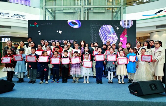 2105班学生为“小百合国际艺术教育”中心的小朋友颁奖