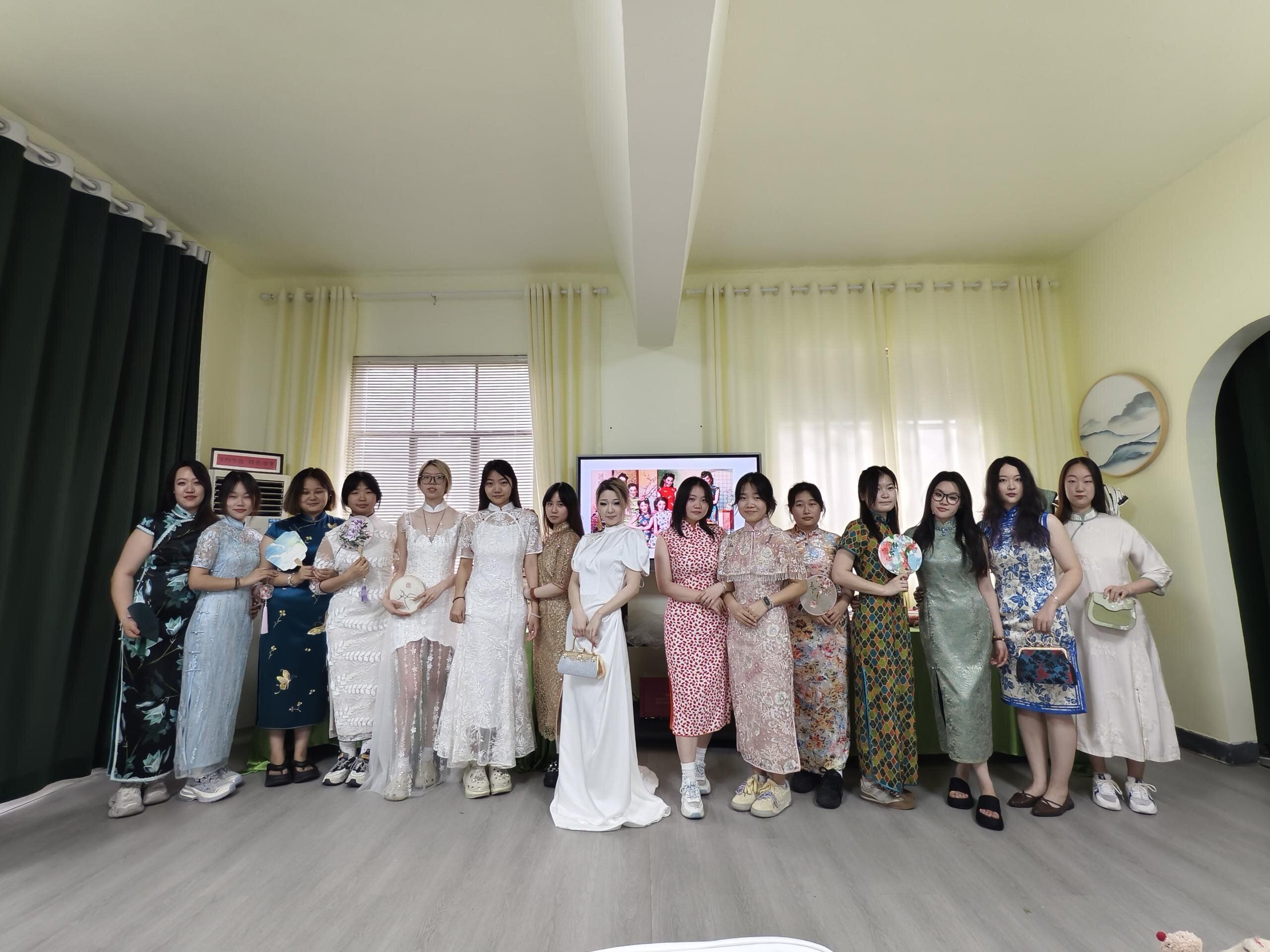 韩张伟老师讲解:“高定是服装设计的金字塔尖,今天的实践让学生看到设计从纸面到奢侈品的关键转化链——对分寸感的极致把控。”参与旗袍试样的同学感慨:“当量体师用粉笔在我肩线偏移0.3厘米处做标记时,我真正理解了‘毫厘定乾坤’的深意。”凤凰吟设计总监在交流中表示:“当代高定需要既懂传统技艺又具国际视野的新锐力量,期待与高校共建人才孵化通道。”此次调研为服装与服饰设计《服装专题设计(一)》课程奠定基础,亦为学生的毕业设计注入文化厚度与商业思维。