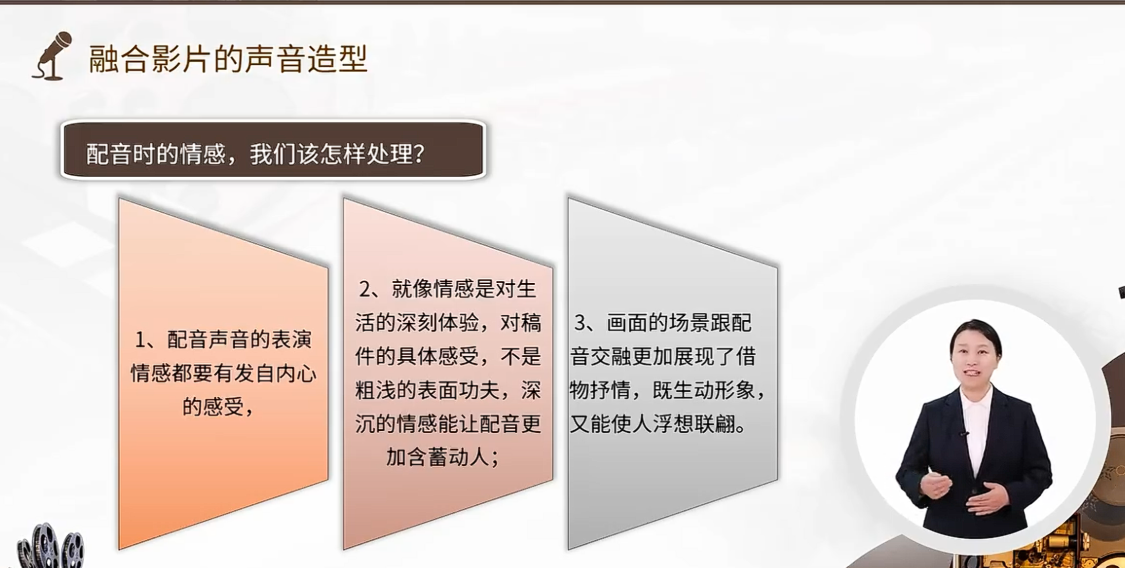 随着国产影视作品的繁荣,进一步带动了国产影视配音的发展,对配音演员的语言功底与声音技能要求越来越高。西安培华学院播音与主持艺术专业创新推出《影视剧配音》课程,将影视剧配音细分为国产影视片配音、纪录片配音、广告片配音、动画片配音等,辅以优秀学生获奖配音作品和影视剧红色经典片段,以生动形象的影视剧配音片段融入细致的配音理论,让同学们直观的学习影视剧配音的语言表达技巧,其中配音知识在课中以选择、问答等形式贯穿教学全流程,巩固影视剧配音知识点。