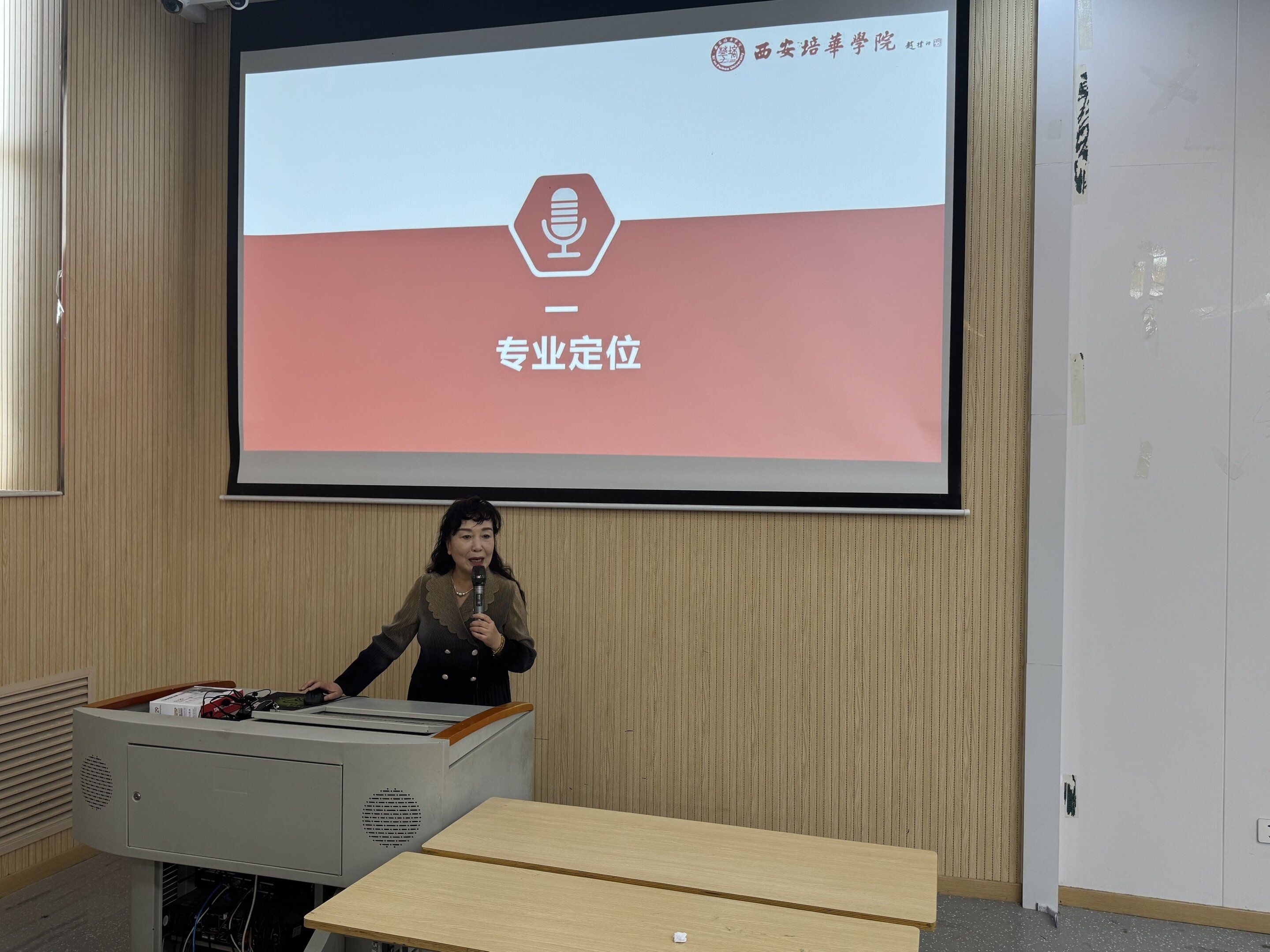 见面会下半场“社团纷呈、青春绽放”,由学院内与专业相关的各优秀学生社团接棒展示。中华传统文化传播工作室、齐越艺术社、大学生朗诵艺术团、西安培华学院电视台广播台、丝路之声工作室的负责人轮番上阵,通过精彩的视频展示、生动的现场解说以及往届优秀成果分享,向新生们全方位展示了各社团的特色品牌活动、所获荣誉以及日常训练场景。学长学姐们自信的风采和丰富的实践经历,极大地激发了新同学们的参与热情,让他们对即将展开的课外专业实践和第二课堂生活充满了向往。