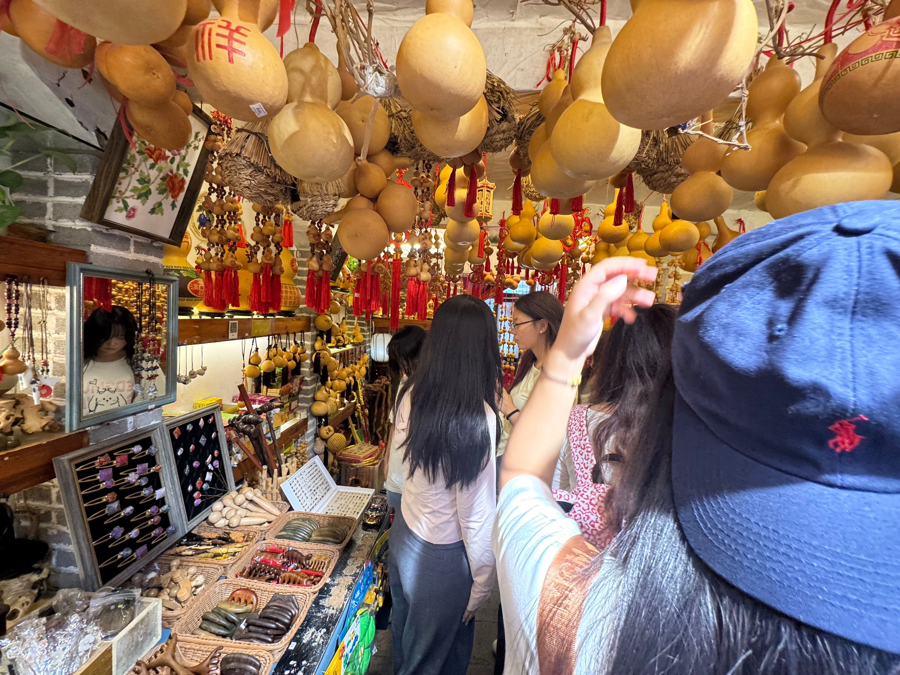 9月15日,实践团队首站抵达以民俗文化和手工艺闻名的袁家村。在这里,学生们不再是 “旁观者”,而是以 “参与者” 的身份深入传统手工艺制作现场。从揉泥、拉坯、塑形到上釉的陶瓷制作全流程,再到经纬交织、纹样创作的传统编织技艺,学生们亲手操作,在指尖的触感中感受传统工艺的细腻与严谨。同时,他们还与当地坚守手艺的匠人展开深入交流,倾听每一项技艺背后的历史故事与传承困境,了解匠人如何在坚守传统的基础上适应时代需求。这场沉浸式体验,让学生们对 “传统手工艺如何活在当下” 有了更直观、更深刻的认知,也为后续探索传统工艺的现代转化积累了鲜活素材。