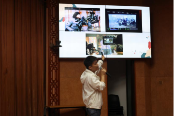 讲座接近尾声,赵锦杰导演与前来参加讲座的师生们进行了积极互动,解答了同学们在创作与拍摄方面的疑惑,并引领大家探索提升拍摄技巧的方法。在讲到“如何用镜头讲故事”时,就本专业未来发展方向以及学习工作中的常见问题,做了相关介绍和详细的解答,并鼓励同学们既要潜心探索,也要致知于行,要勤思考、多动手,去除浮躁之气,沉下心来干学习,心无旁骛钻技能,在奋斗中增长才干。全体师生认真专注,积极分享内心感受,讲座气氛十分活跃。讲座结束后,赵锦杰导演对同学们提出殷切期望,希望同学们争做有抱负、有理想、有格局、有能力,更加自信的新时代青年。