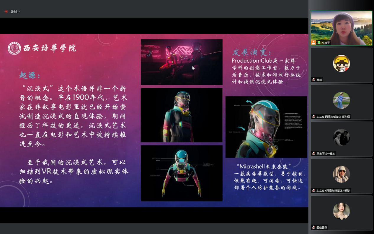 房老师为同学们展示了“光之博物馆”“The star”“北部森林之光”等沉浸式艺术的动态影像及视频,这种结合了多领域链接的新兴艺术形式给同学们的感观带来了极大的冲击,让同学们对艺术的表现形式有了全新的认知。同时,房老师引入的地缘文化概念为同学们了解历史、了解地方文化、传播中国精神提供了更为广阔的思路。